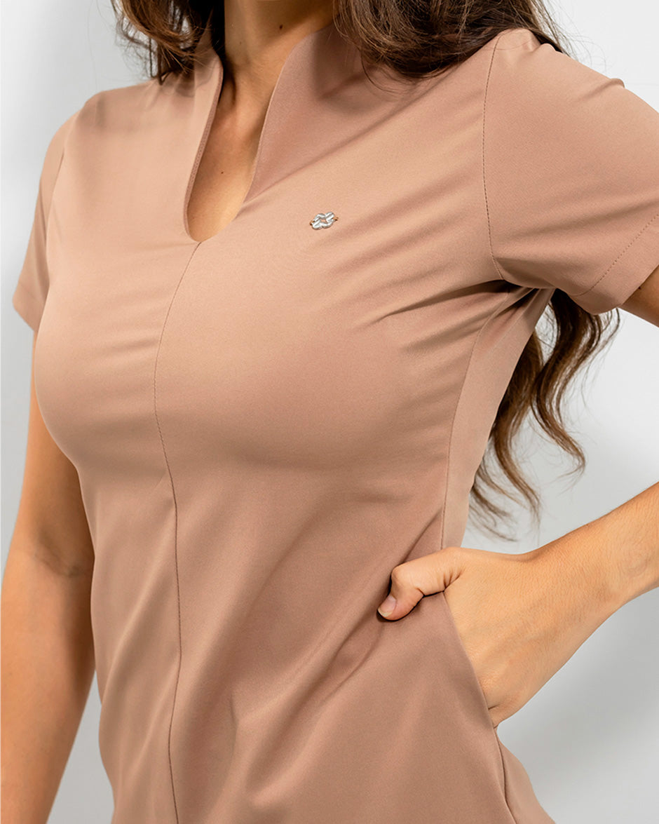 Esta blusa tiene el estilo perfecto para sentirte elegante y cómoda al mismo tiempo, ya que su cuello cuenta con un diseño único en forma de gota, sus dos bolsillos laterales la hacen una blusa funcional perfecta para el día a día.