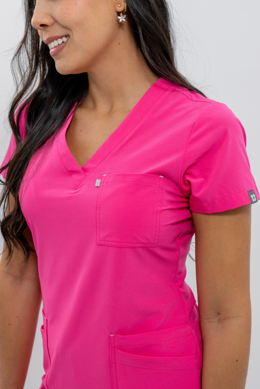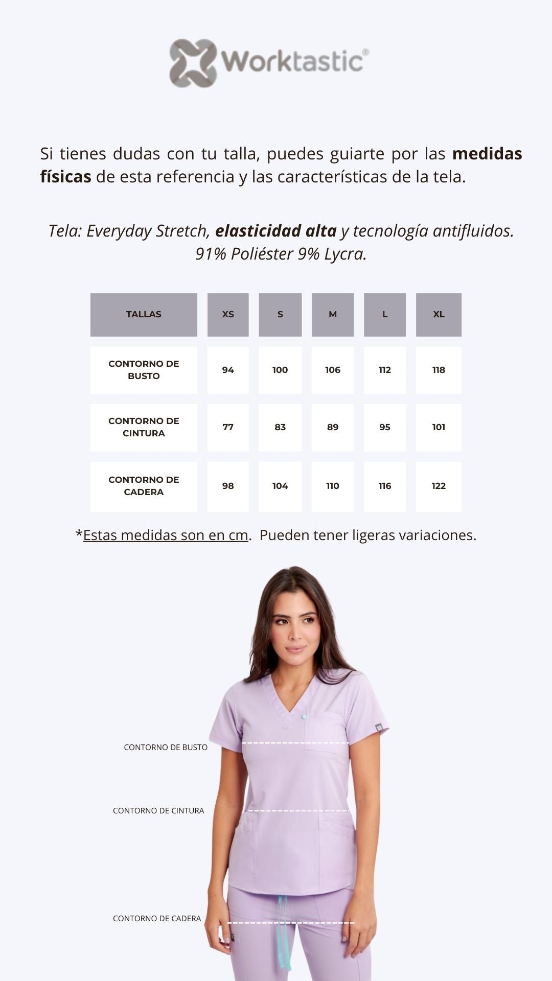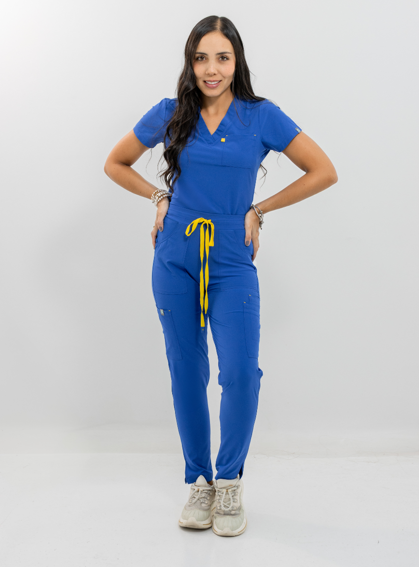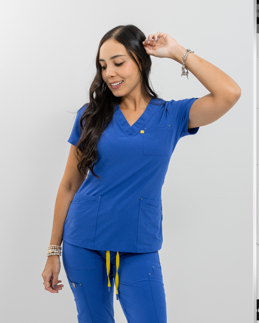 La blusa GALAXY tiene un escote en V con un diseño súper funcional de cinco bolsillos, uno en la parte superior izquierda y dos en cada uno de los laterales de la parte inferior. Es un esencial que complementará tus scrubs por mucho tiemo, pues su silueta y su funcionalidad, hacen que sea versátil, atemporal y cómodo para tus espacios de trabajo.