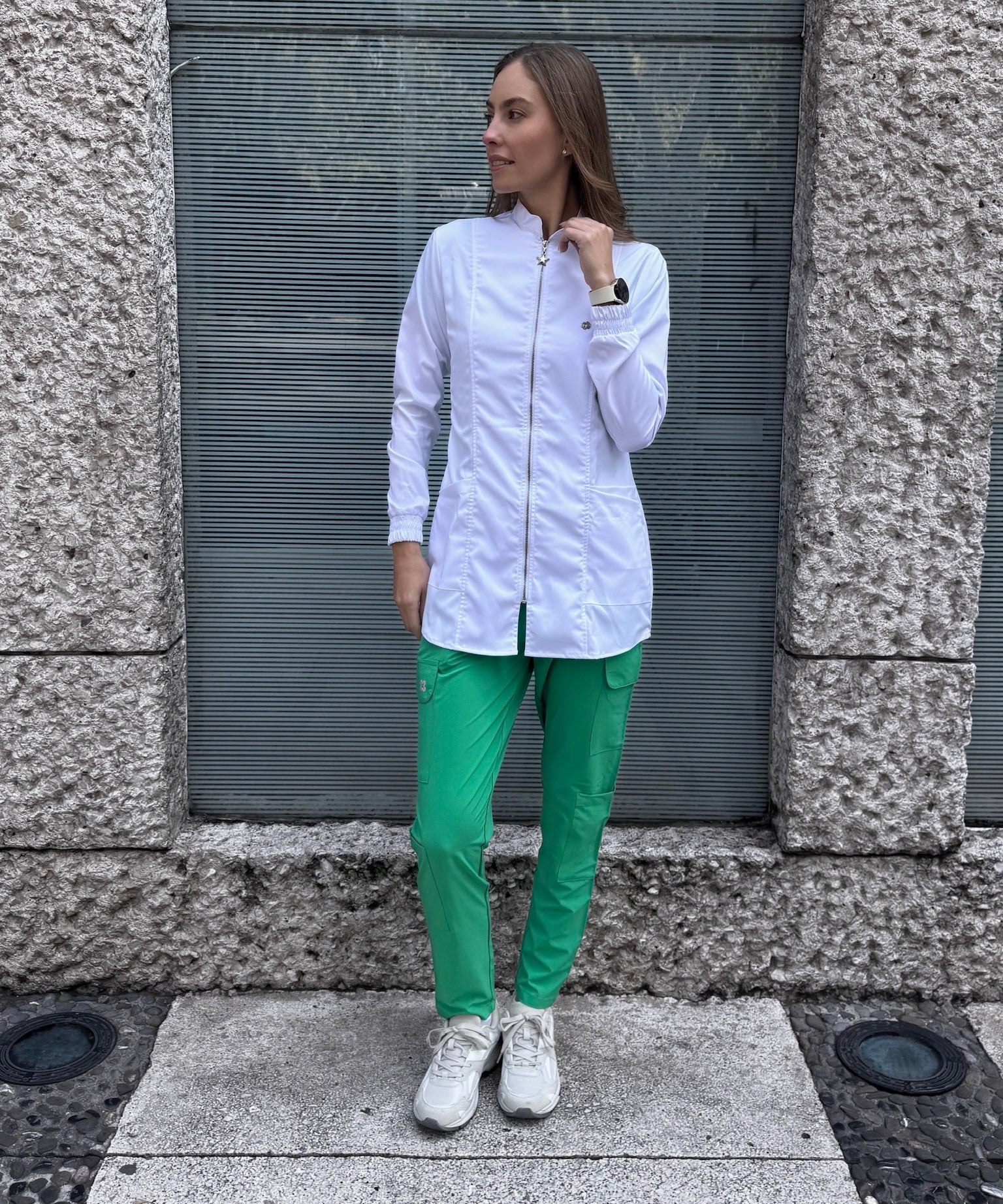 MERAK tiene un cuello tipo Mao, un escote con botonadura cubierta y diseño limpio. Cuenta con bolsillos laterales con cremallera y un fit que se ajusta a la cintura para favorece la figura. Es una prenda esencial, funcional y atemporal. Todo lo que necesitas en tu día a día profesional.