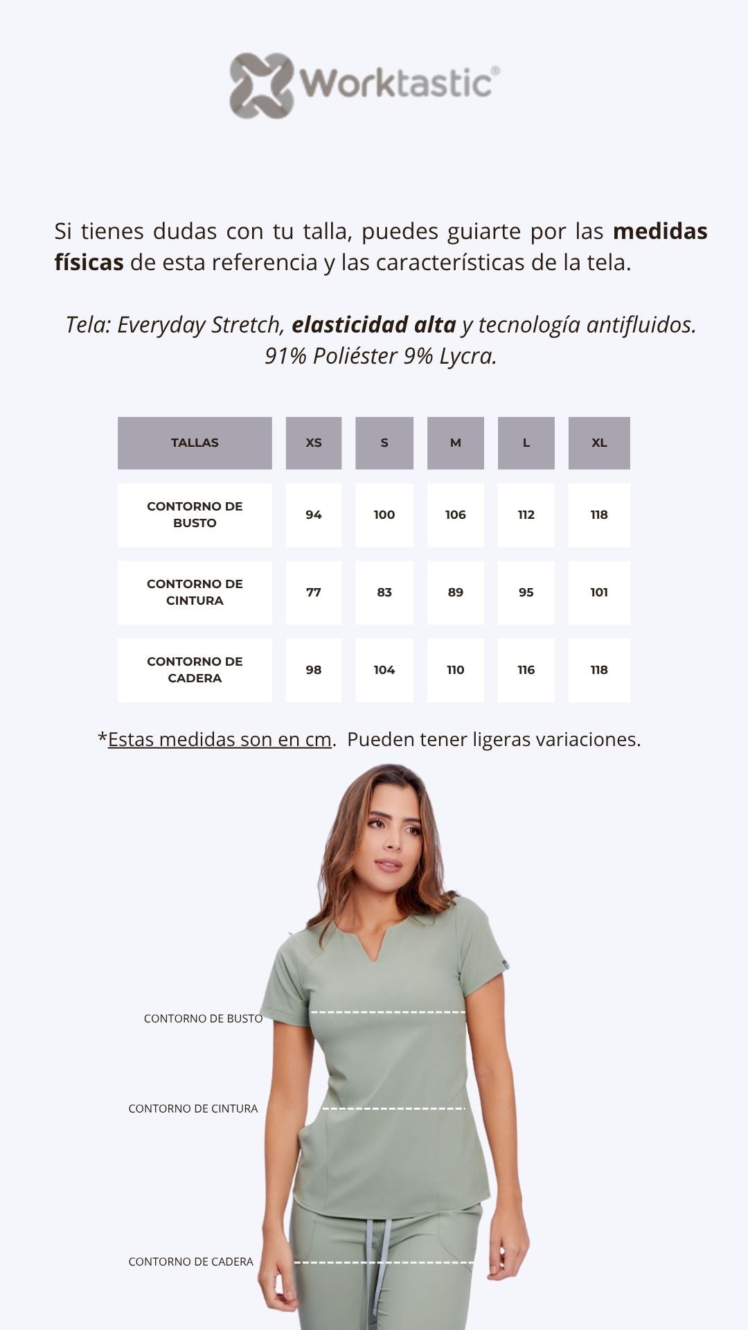 La referencia NEW MOON es un blusa de manga corta, con bolsillos laterales y un cuello que tiene un diseño diferente al clásico cuello en V. Es una opcion básica que puede complementar tus scrubs de manera versátil.