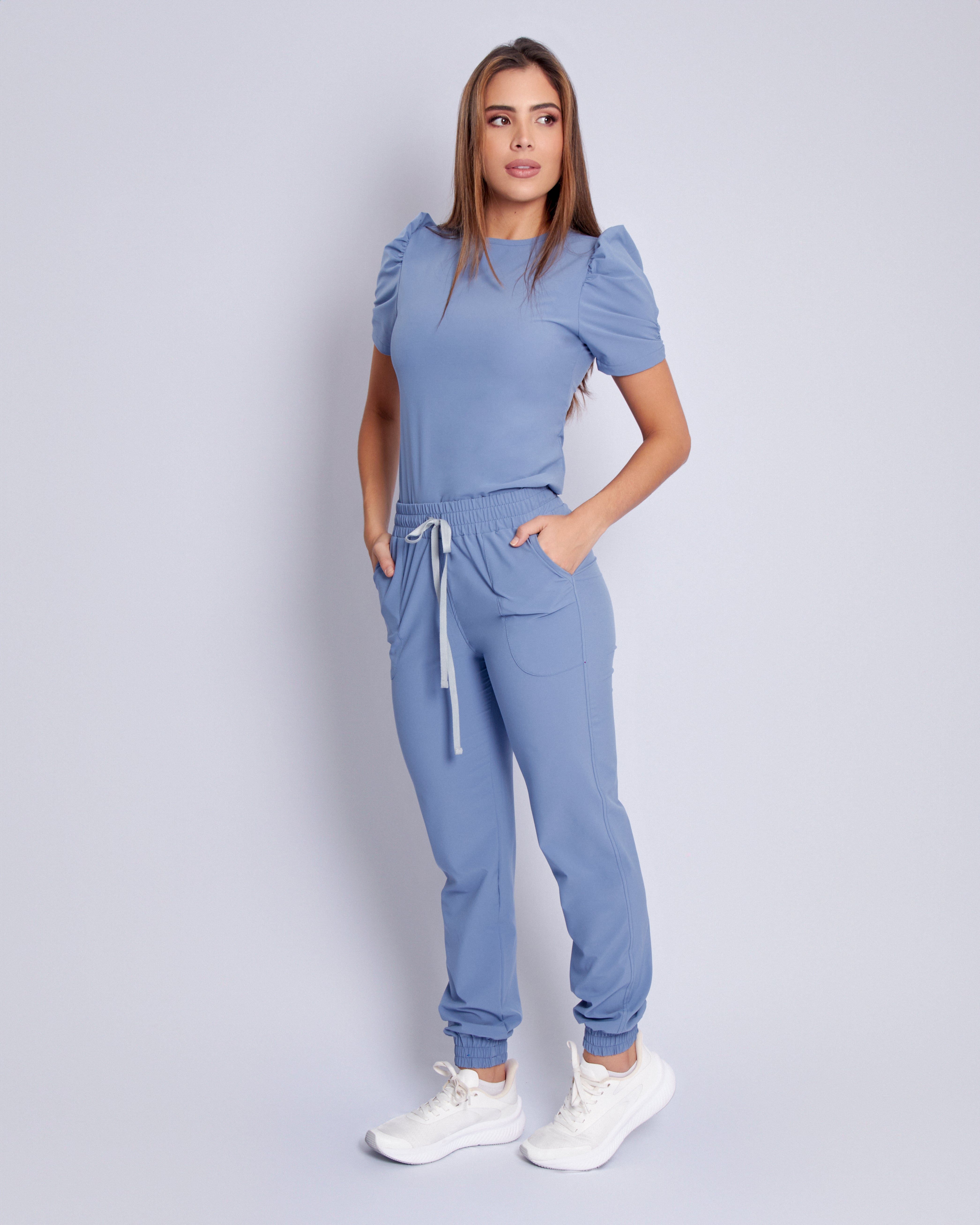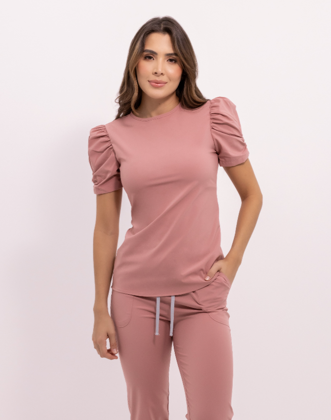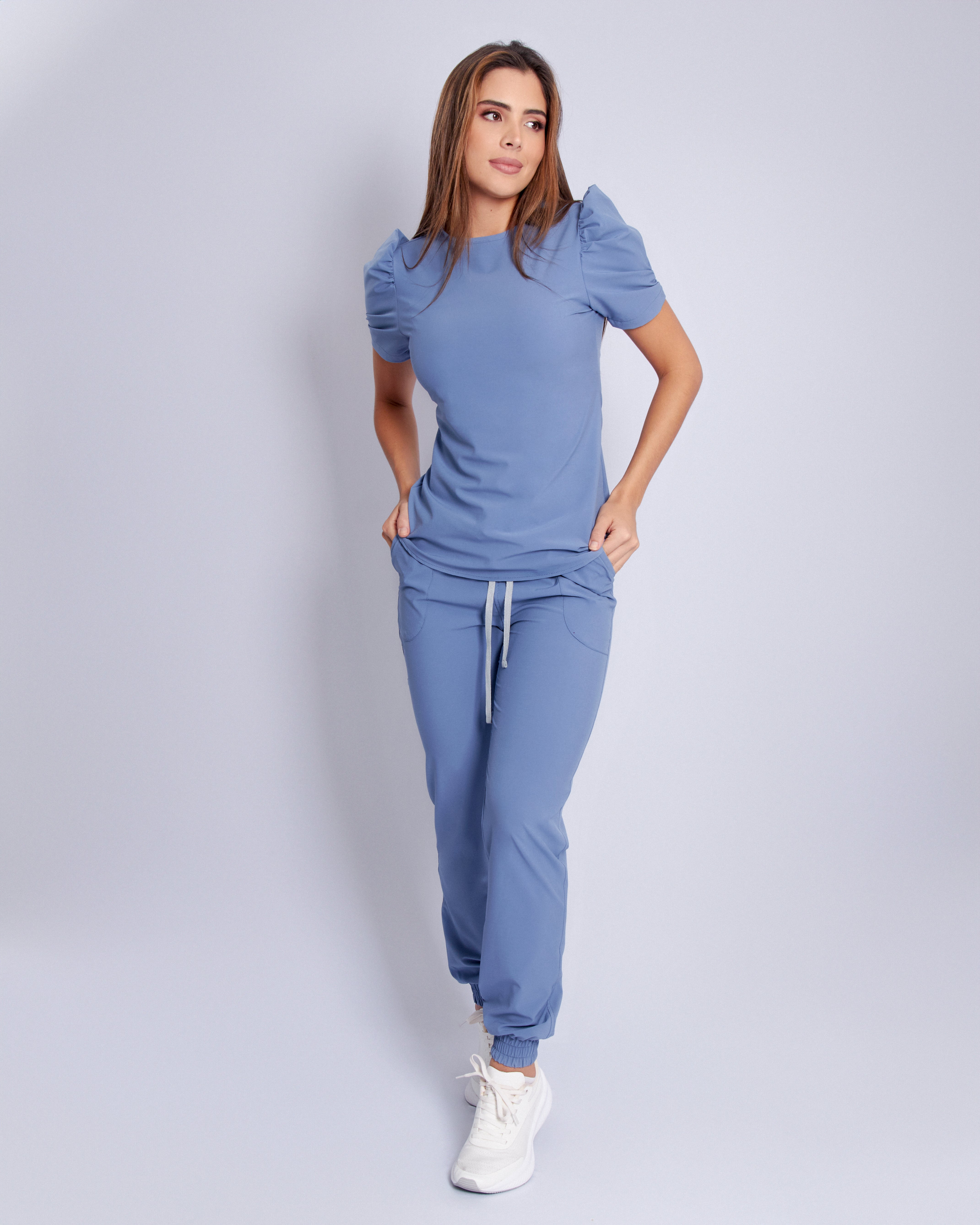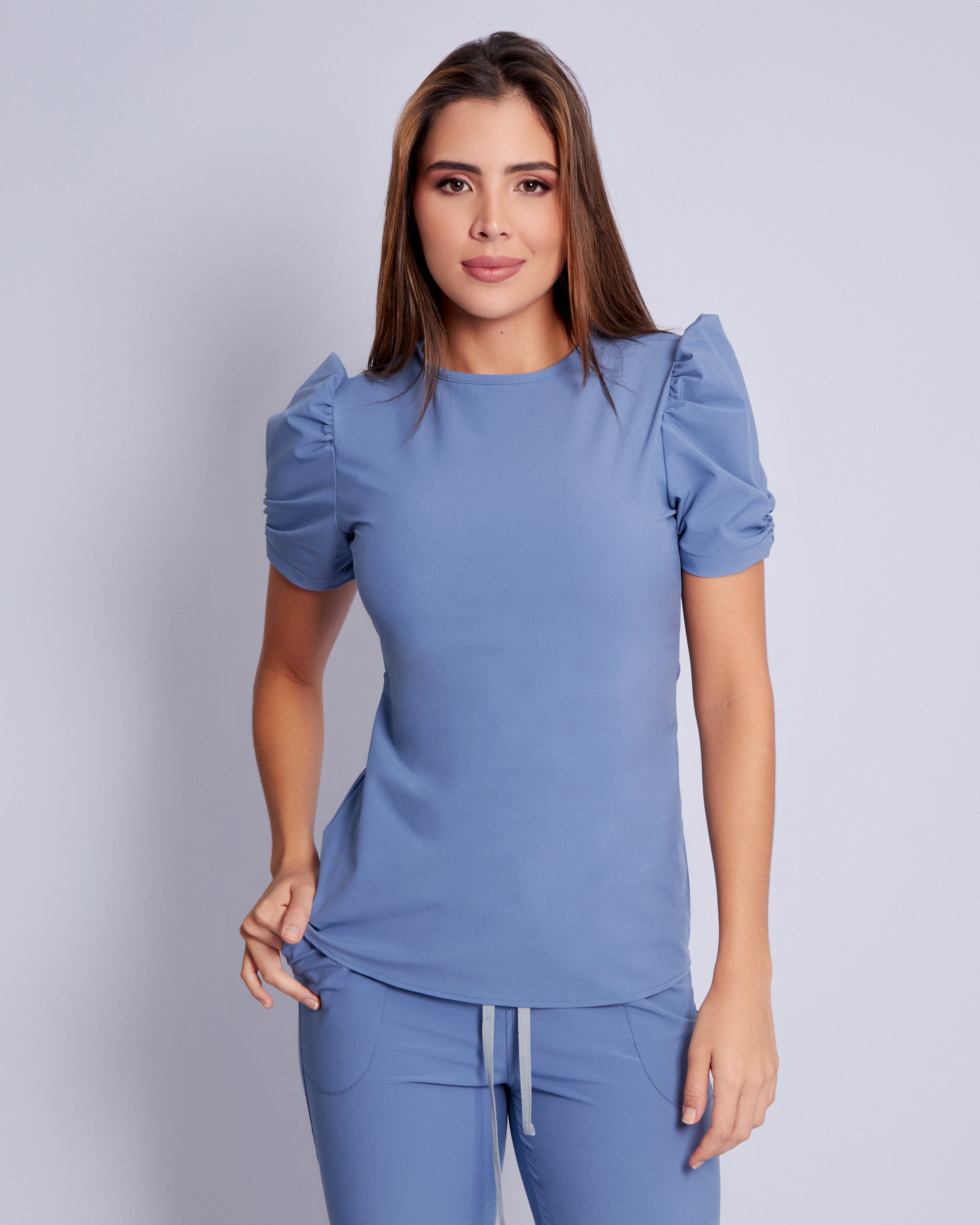 La referencia NEW SKY es una blusa de cuello redondo con un detalle super femenino en la manga tipo recogido.Es una prenda esencial con un toque de magia que la hace increible.