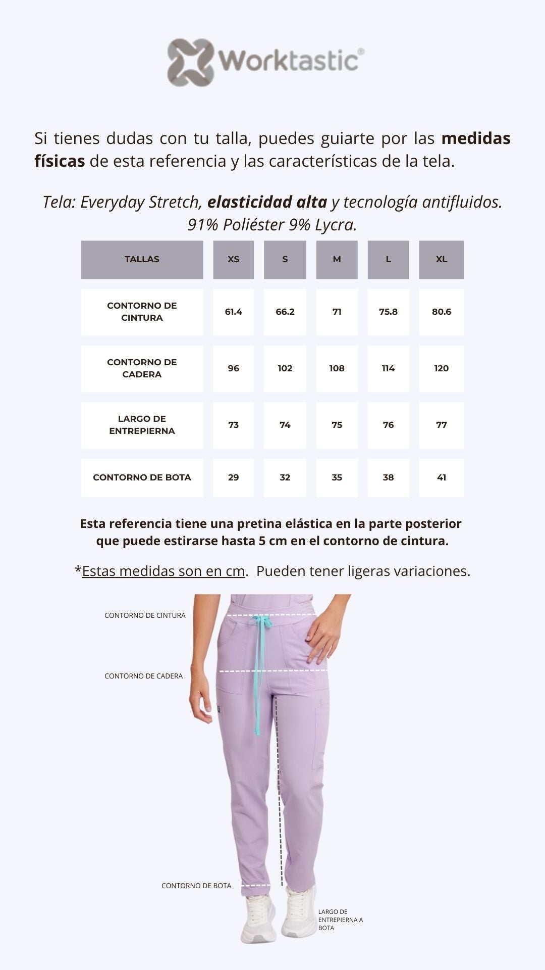 El pantalón GALAXY es una silueta de bota recta y look clásico que cuenta con elástico y cordón ajustable en la cintura, dos bolsillos laterales a la altura de las caderas , tres bolsillos a media pierna y dos bolsillos posteriores. Es un esencial que complementará tus scrubs por mucho tiemo, pues su silueta y su funcionalidad, hacen que sea versátil, atemporal y cómodo para tus espacios de trabajo.